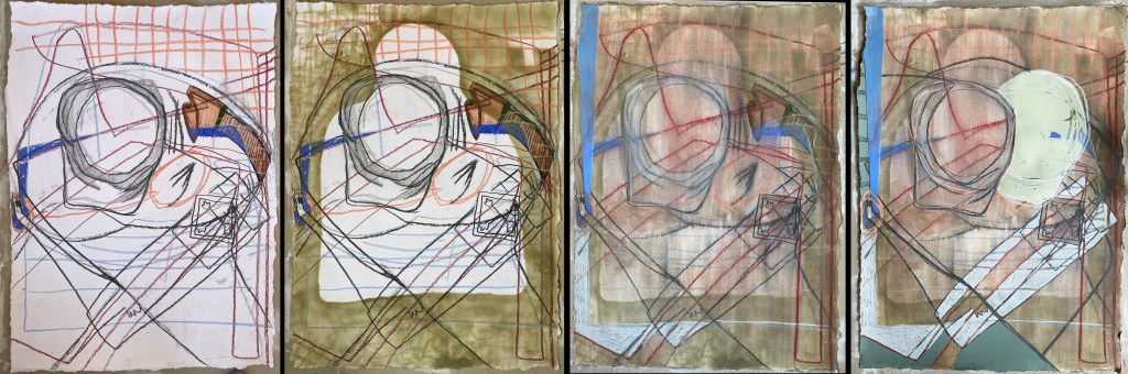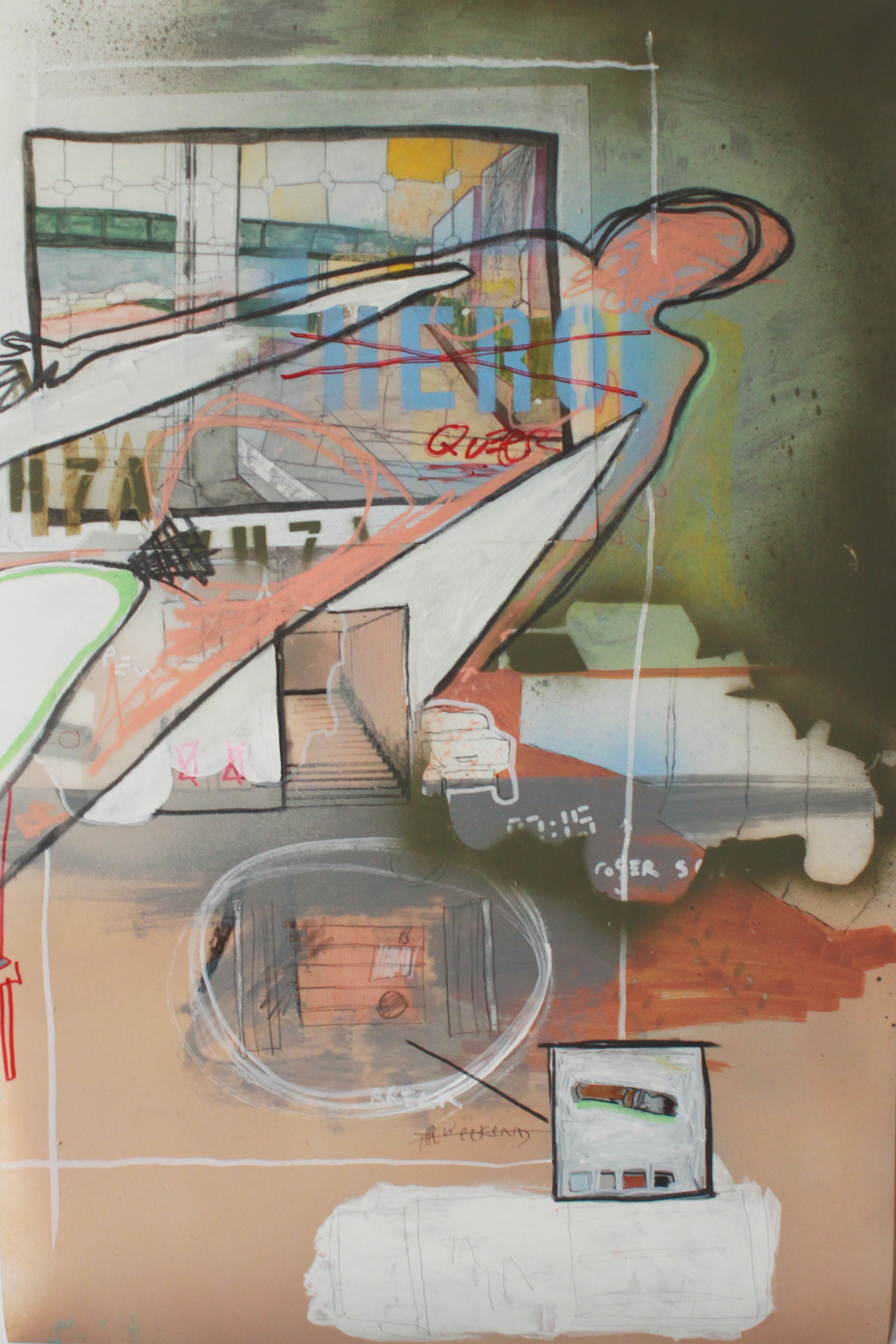 pencil, pastel, acrylic on paper