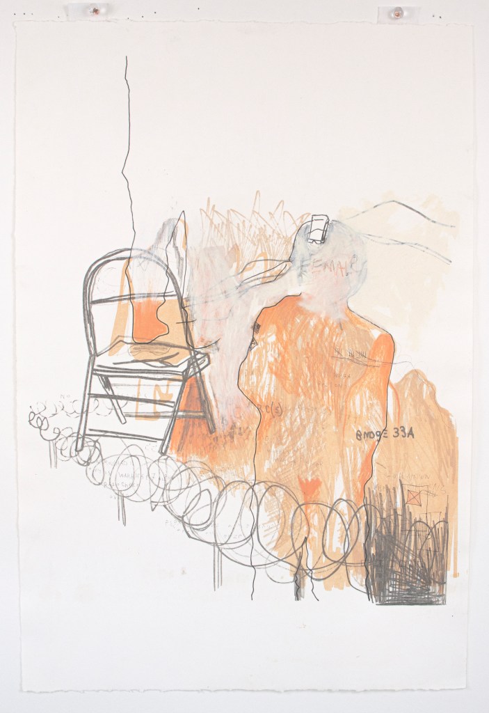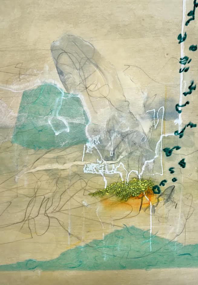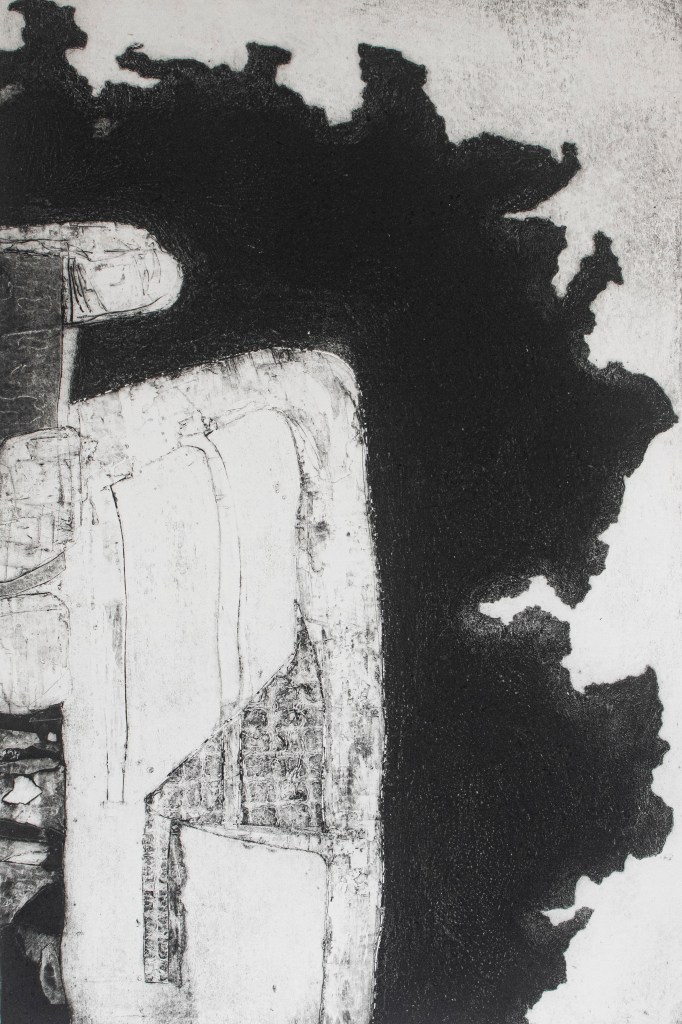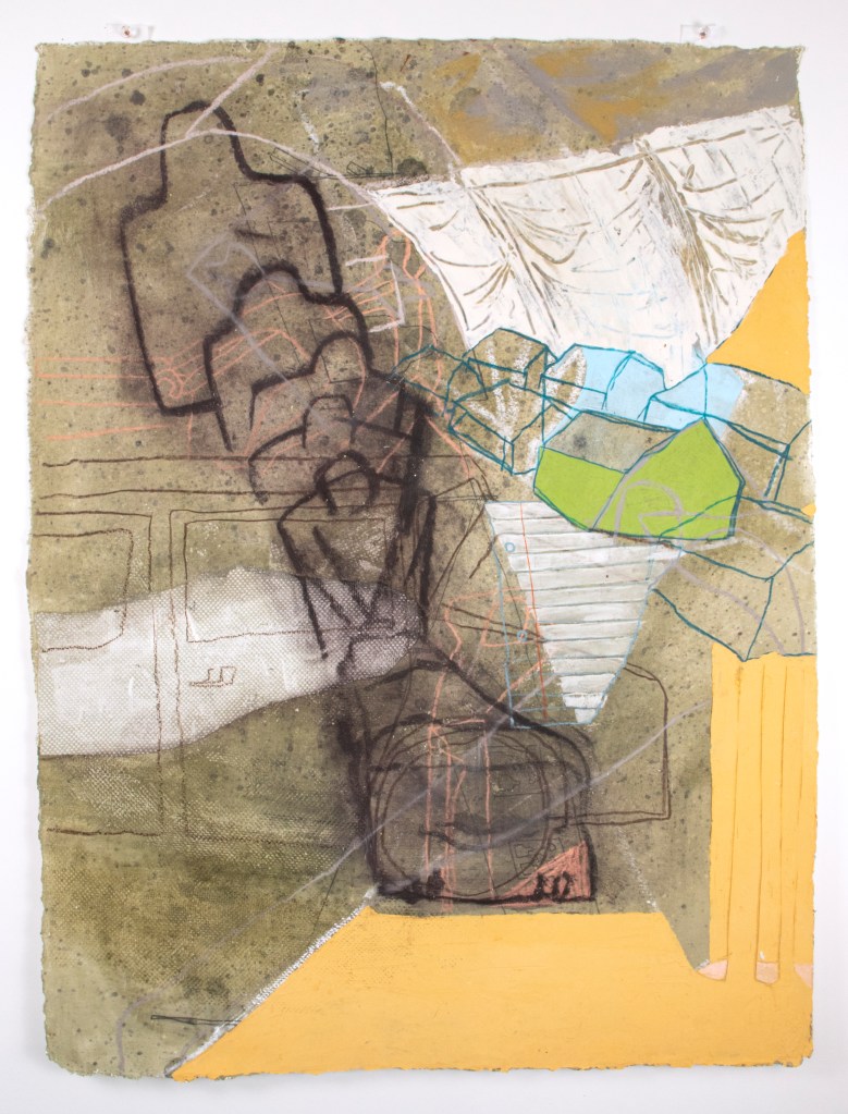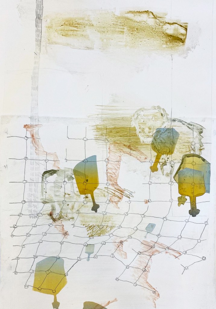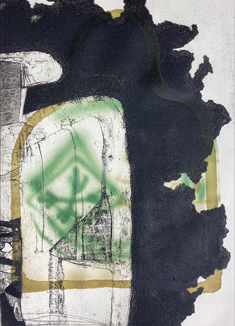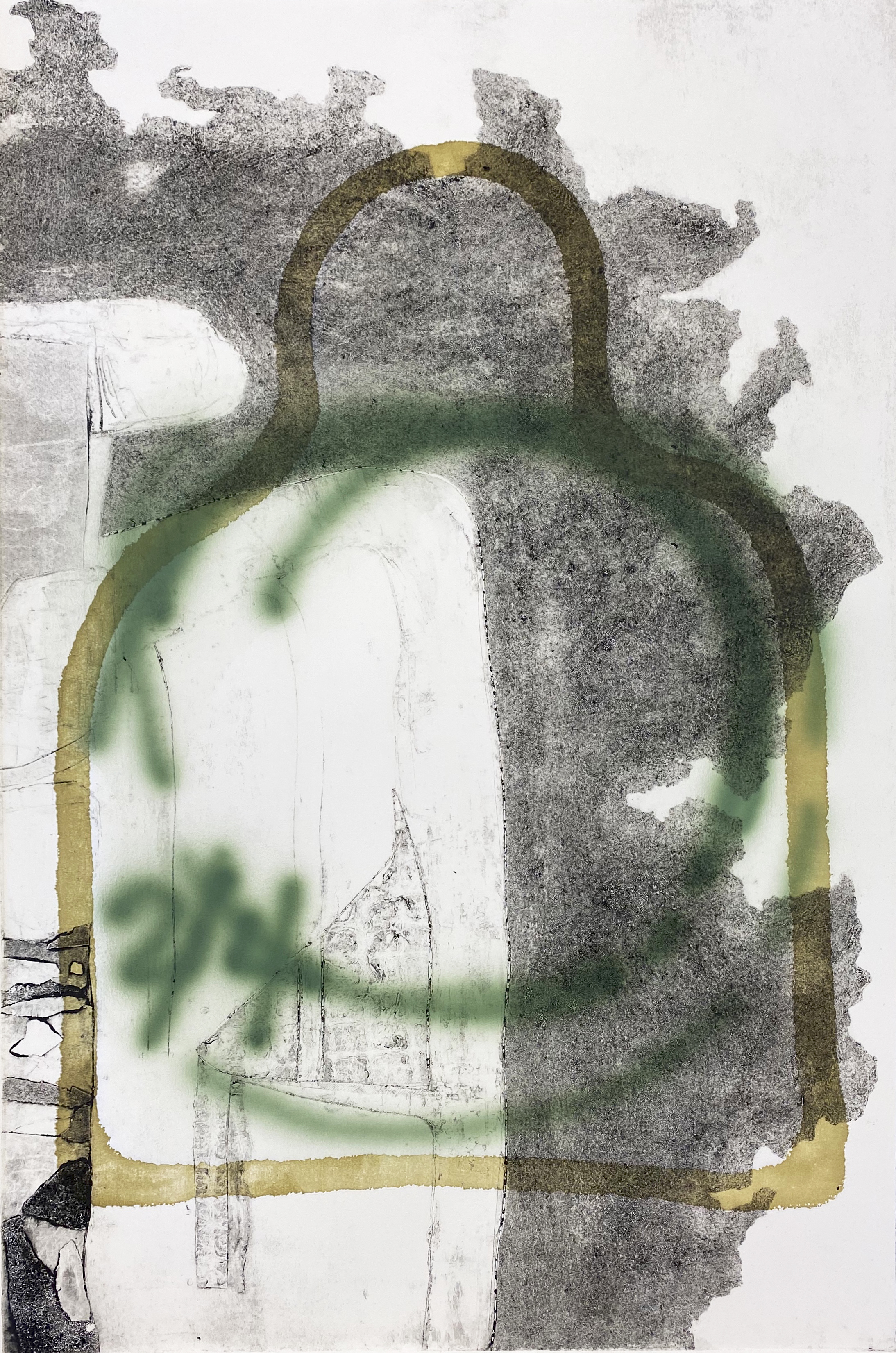 Lithograph with chine colle, monotype and spray paint