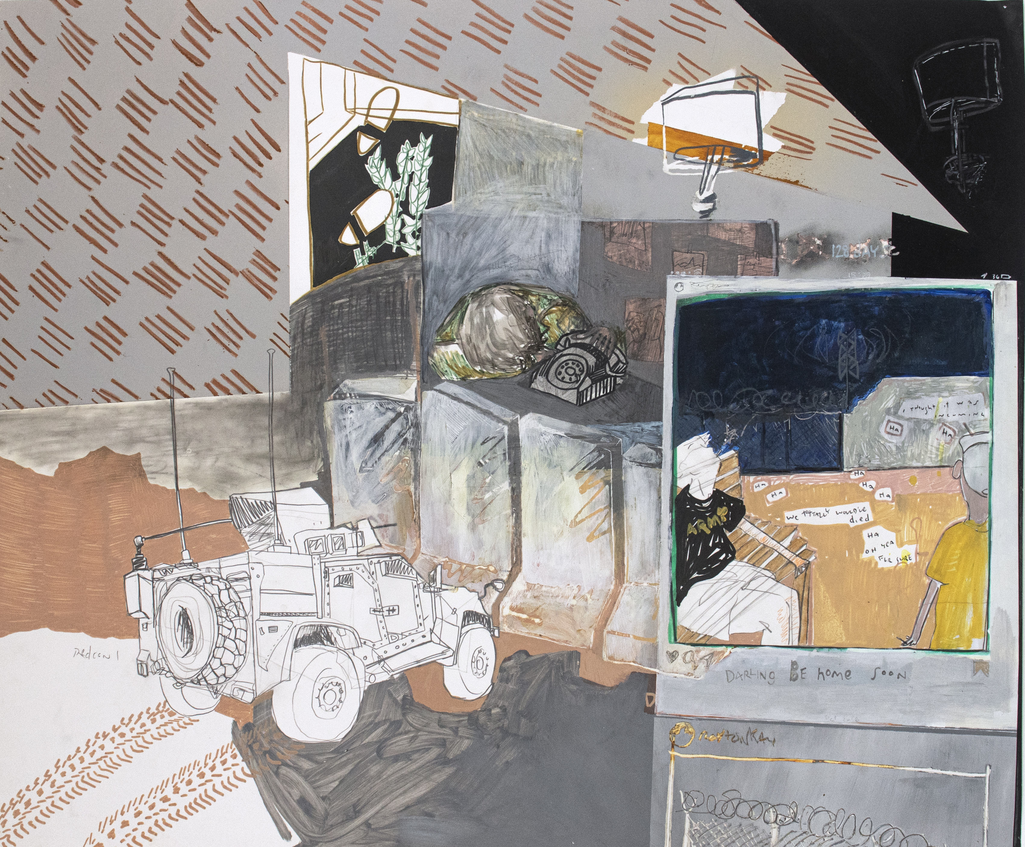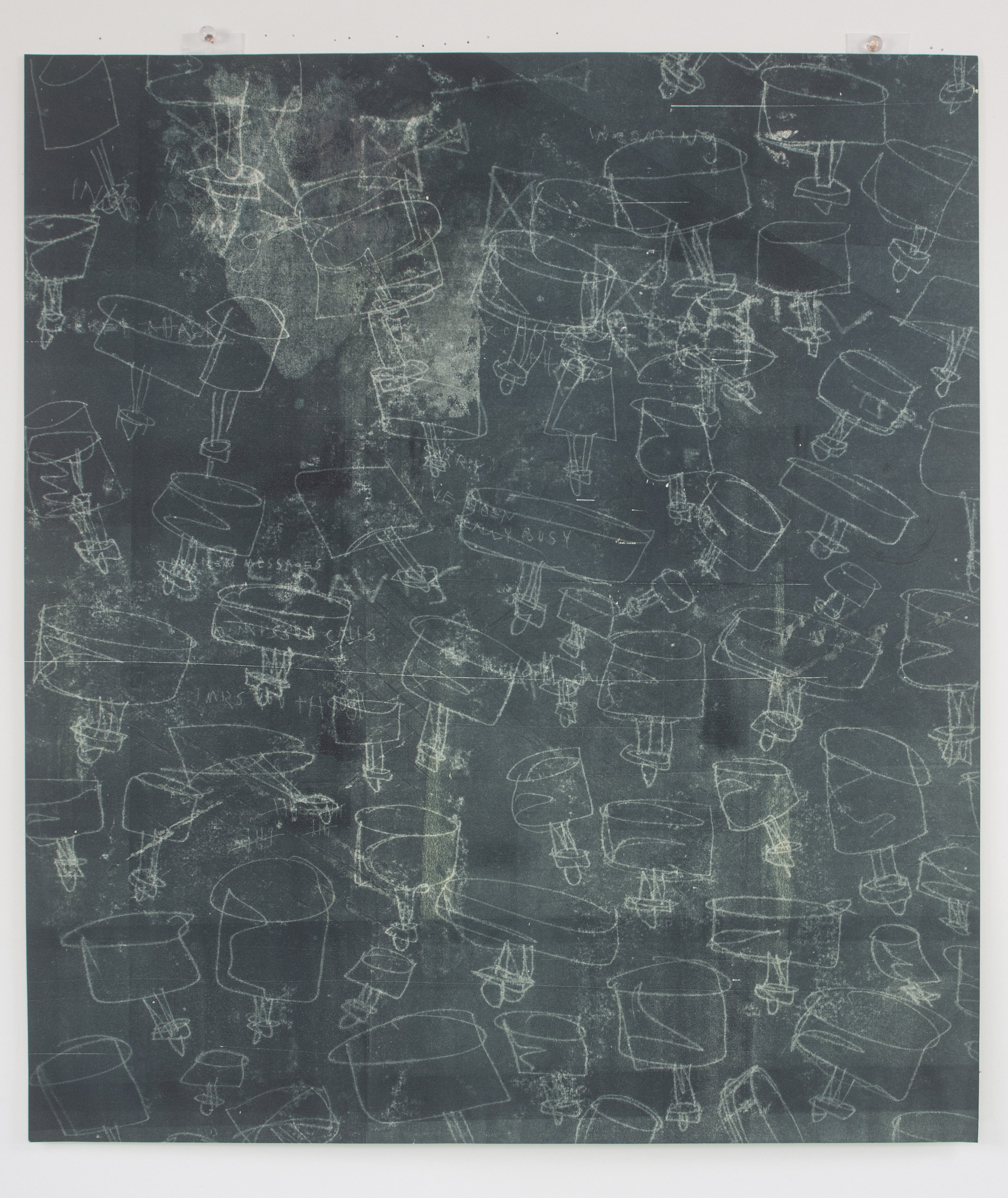 Acrylic, marker, graphite, colored pencil, ink on matte duralar